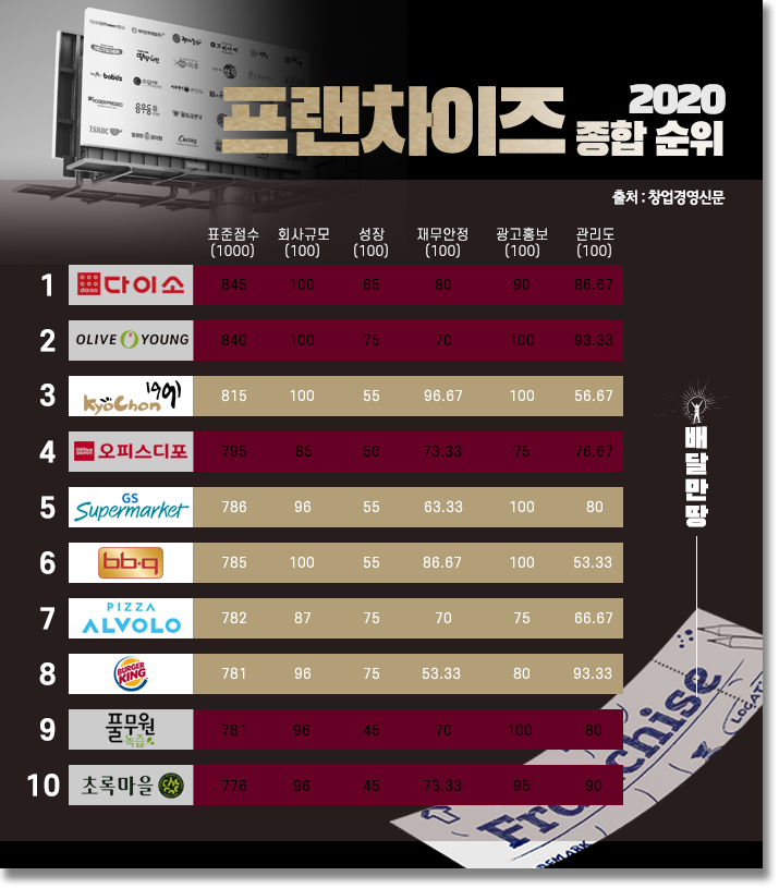프랜차이즈 종합순위 TOP10 2020년 본문