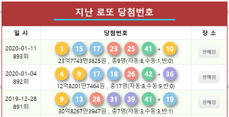 | 로또 1등 최다 판매점 순위! 우리동네에 로또 1등 당첨 판매점이 있을까? (0) | 2020.01.17 |