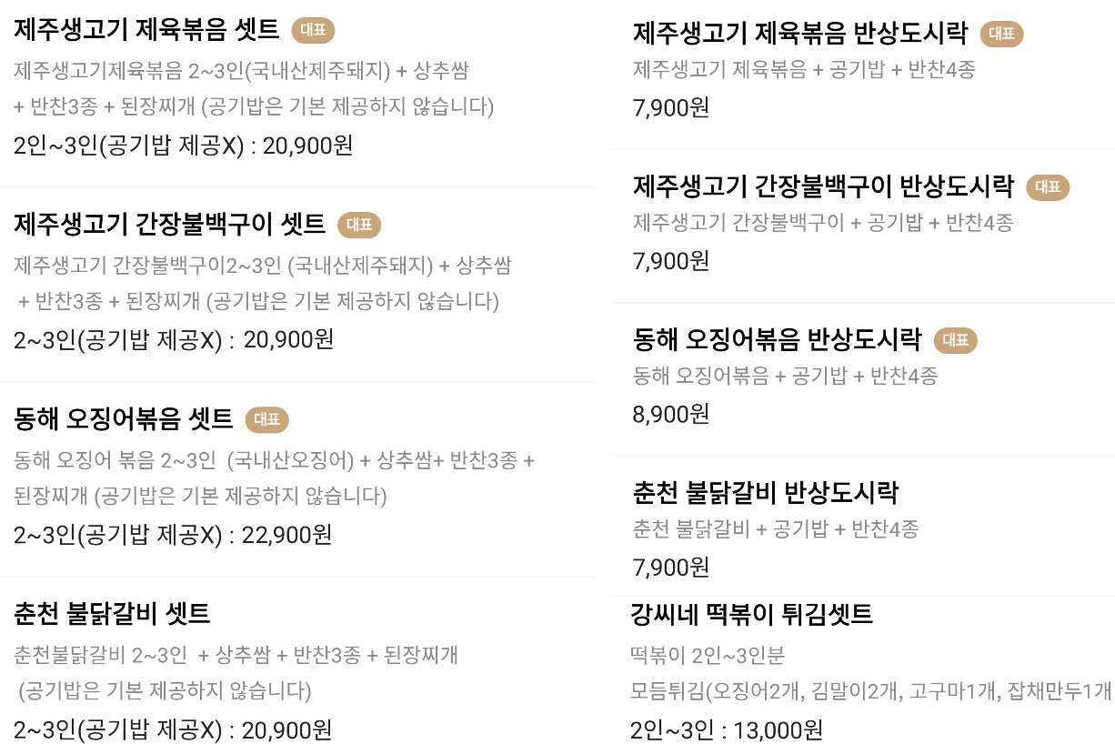 <안산배달맛집 강씨네부엌 배달의 민족 메뉴 가격표>