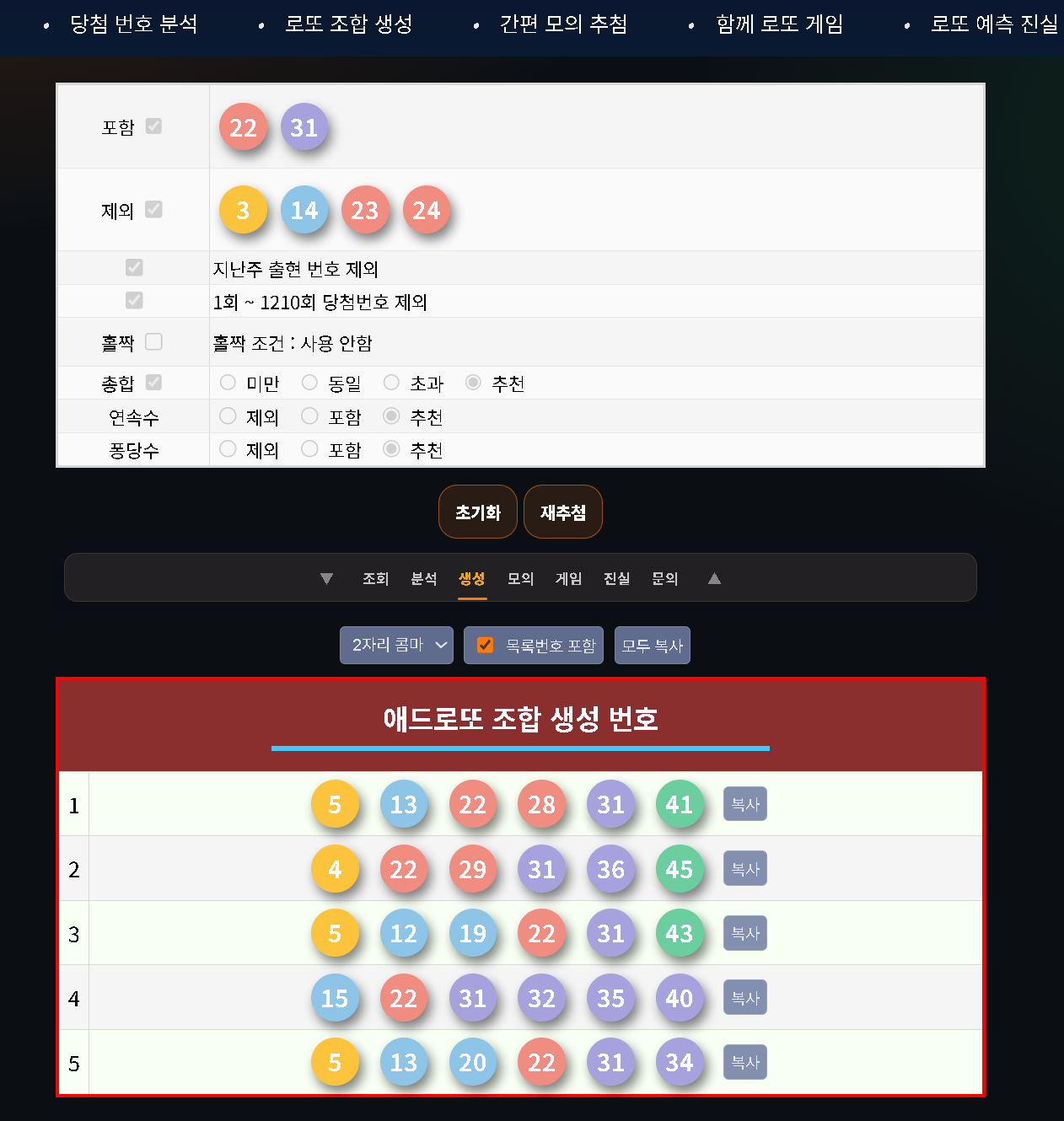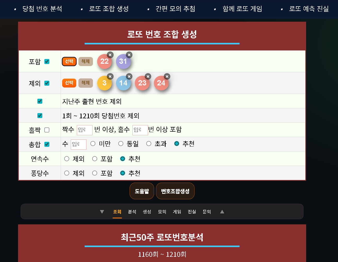 ADRYTHING Lotto | 로또 번호 추천 · 조건별 조합 생성